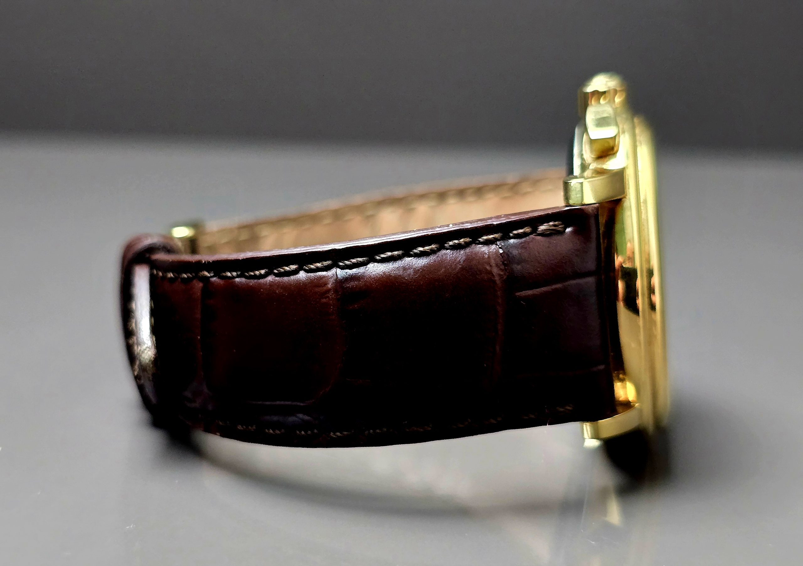- Bracelet/Strap: Brown Leather Strap