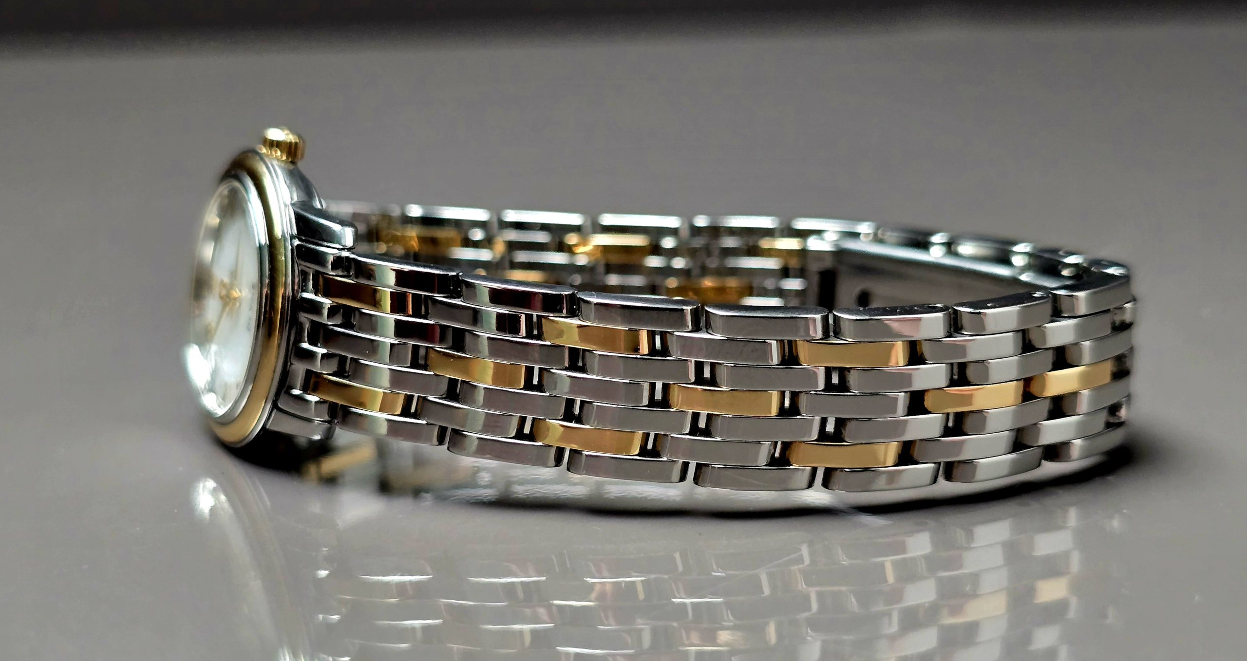 Bracelet/Strap: Stainless Steel & Yellow Gold Bracelet